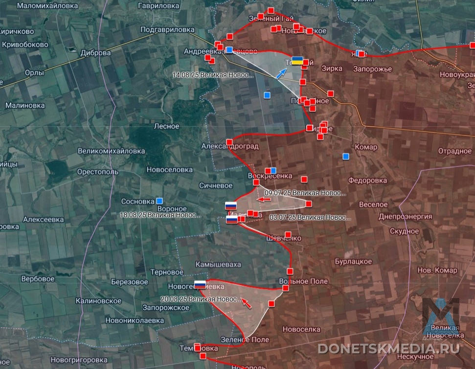 После освобождения Темировки российские войска продолжили движение на северо-запад, заняв новые позиции в лесных посадках вокруг Запорожского и приблизившись к окраинам села с двух направлений.