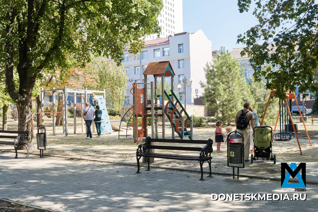Продолжается и масштабное благоустройство общественных пространств, чтобы возродить мирную жизнь города. Снова слышен детский смех и гуляют мамы с колясками в новом парке имени Горького в Пролетарском районе, молодёжь отрабатывает спортивные трюки в сквере «Сокол» на скейт-площадке и роллердроме. Жемчужиной Донецка в этом году стал сквер «Гулливер». Особое внимание уделено территории вокруг стадиона «Шахтёр». Москва установила детские площадки и высадила зелёные насаждения.