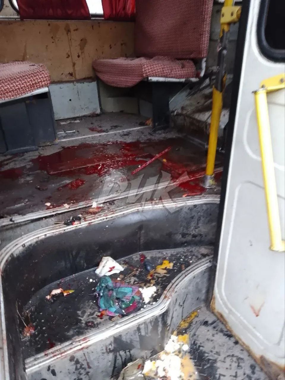 Сперва появились сообщения об ударе по автобусу №2, в жилом массиве «Комсомолец» (в Никитовском районе). На фото видно, что транспорт пострадал не просто из-за близкого удара неподалёку. Грязные укронацисты намеренно целились по жителям.