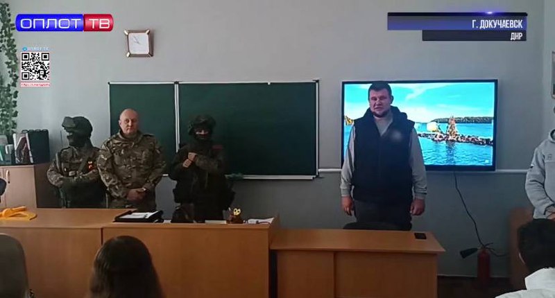 Докучаевск: Военнослужащие СВО провели встречу со школьниками, рассказали о своей службе, познакомили с оружием и подвигами сослуживцев.
