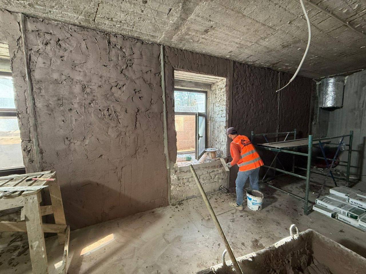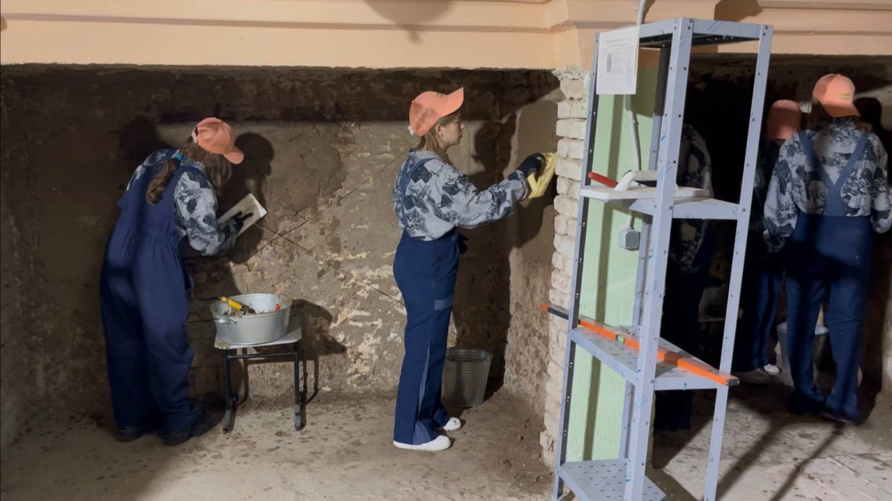 Мариуполь: Продолжается восстановление драмтеатра. Также завершено благоустройство территории восстановленного строительного техникума.