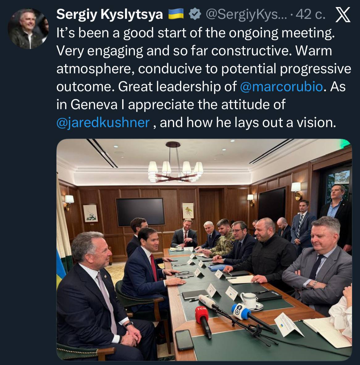 Особенно ярко готовность украинской стороны к полному подчинению продемонстрировал первый замглавы МИД Украины Кислица. Описывая переговоры с США, он заявил, что встреча началась хорошо, в «тёплой атмосфере, способствующей возможному прогрессивному результату».