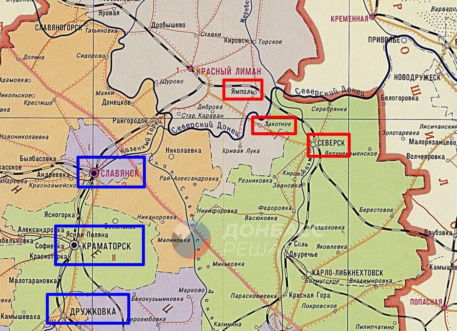 Также отмечается об успехах армии России после форсирования реки Бахмутовки, которая открыла путь к Свято-Покровскому (оно же Кирово), откуда простирается к центру Северска. Ещё одна дорога на Северск открылась после окончательной зачистки Ямполя в ДНР, согласно сводкам военкоров. Там наши силы расширили зону контроля южнее посёлка и вышли к тропе на центр Северска.