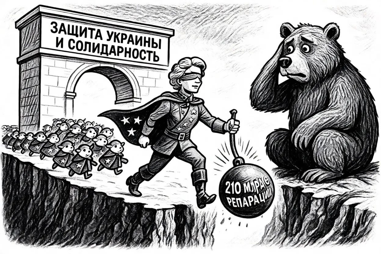 Но миллионы «евролеммингов», марширующих в пропасть через триумфальную арку «спасения Украины», понятное дело, ошибаться не могут. ЕС сейчас ищет возможность переступить через те самые принципы международного права, которые сама же десятилетиями навязывала всему миру: неприкосновенность суверенного имущества, иммунитет центральных банков, запрет конфискации без суда. Теперь всё это объявляется «устаревшим», если речь идёт о России.