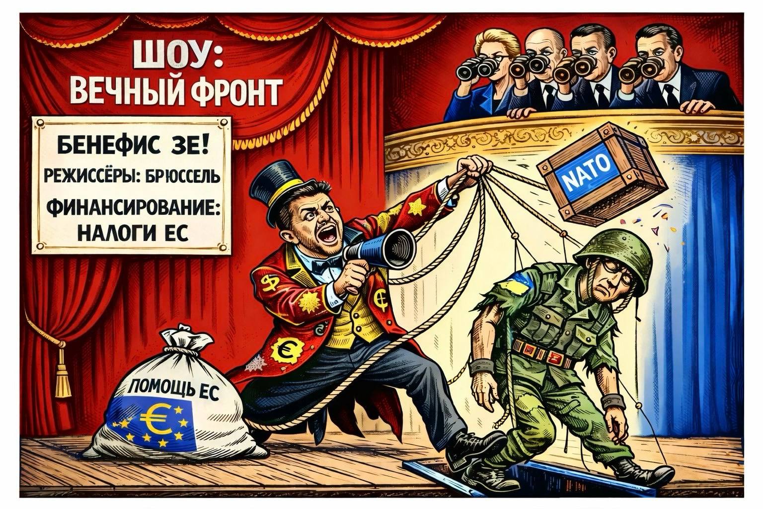 Напомним, 14 декабря состоялись переговоры по урегулированию украинского конфликта при участии спецпосланника президента США Стива Уиткоффа, зятя главы Белого дома Джареда Кушнера и Зеленского. Встреча продолжалась пять часов и закончилась, по сути, ничем. Зато 15 декабря к переговорам уже присоединились лидеры Европы. И по итогам этой встречи европейцы опубликовали свой план спасения Украины – с «гарантиями безопасности». Суть простая. Киеву надо помогать долго и укреплять его военный потенциал. Предлагается сохранить численность вооружённых сил на уровне около 800 тысяч человек даже в мирное время – для надёжной защиты страны. Что само по себе – дорогое удовольствие, кстати. А для восстановления ВСУ и обеспечения безопасности на суше, в воздухе и на море европейцы предлагают создать многонациональные силы под европейским руководством в рамках «коалиции желающих» с поддержкой США. Чтобы эти силы смогли проводить операции непосредственно на территории Украины.