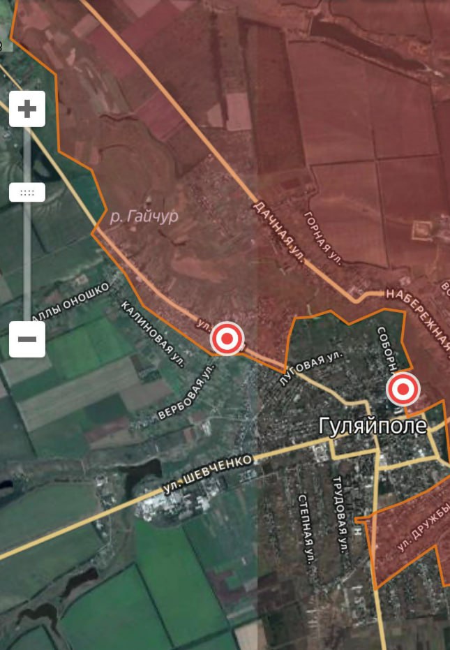 По данным военкора Тимофея Ермакова, «нацистов выбили из центра Гуляйполя, а также под контролем нашей Армии теперь вся улица Великая». Основные столкновения сейчас идут в микрорайоне Цветной. Там бойцы ведут бой за контроль над кварталом на пересечении улиц Трудовая и Медовая, уточняют авторы канала «105-й полк НМ ДНР».