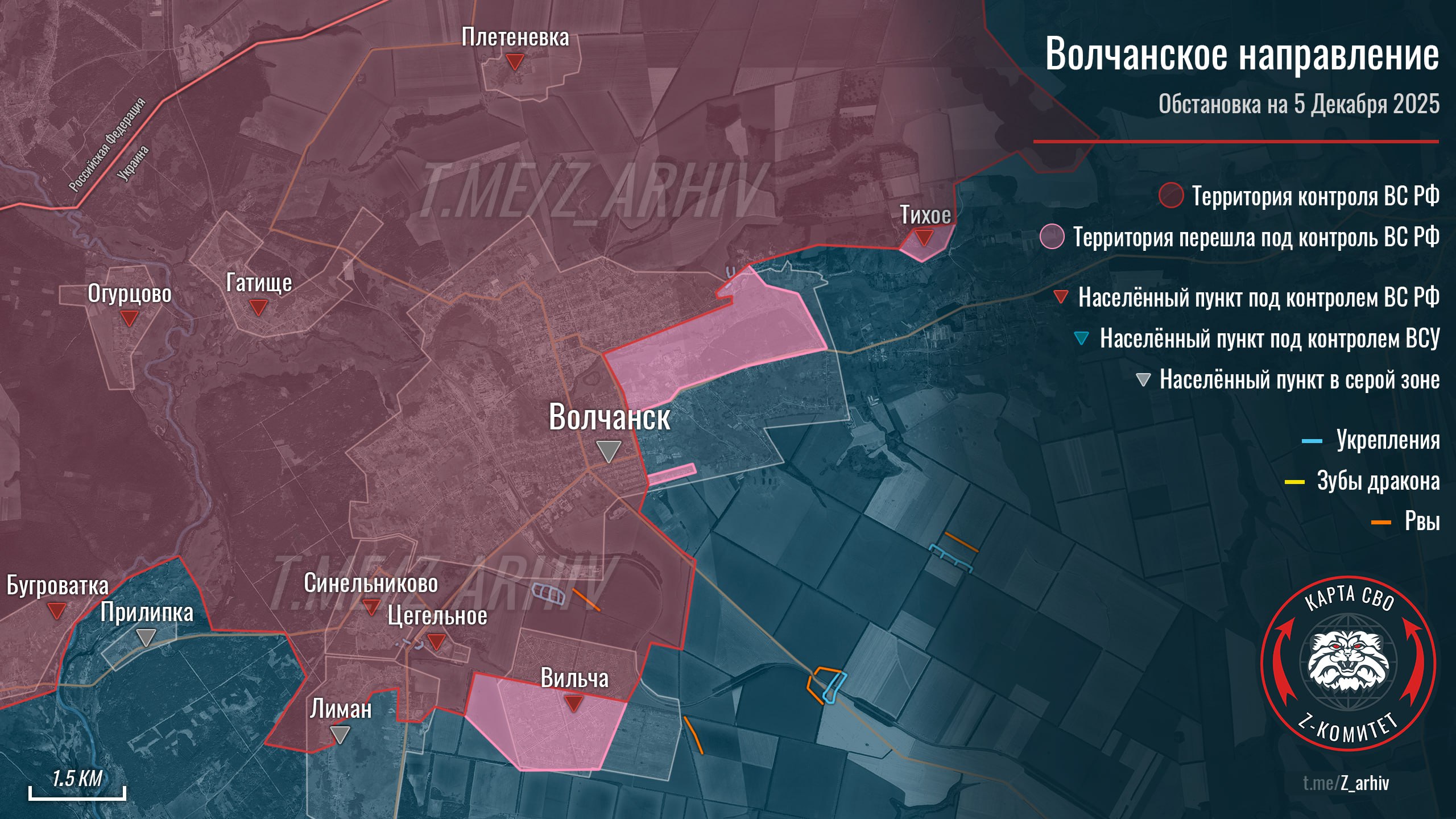 Развивая успех после освобождения Прилипки, войска РФ наступают в сторону Графского. Поступили данные о начале боёв за Симиновку. В населённом пункте Волчанские Хутора продолжается методичное выдавливание противника и расширение зоны контроля.