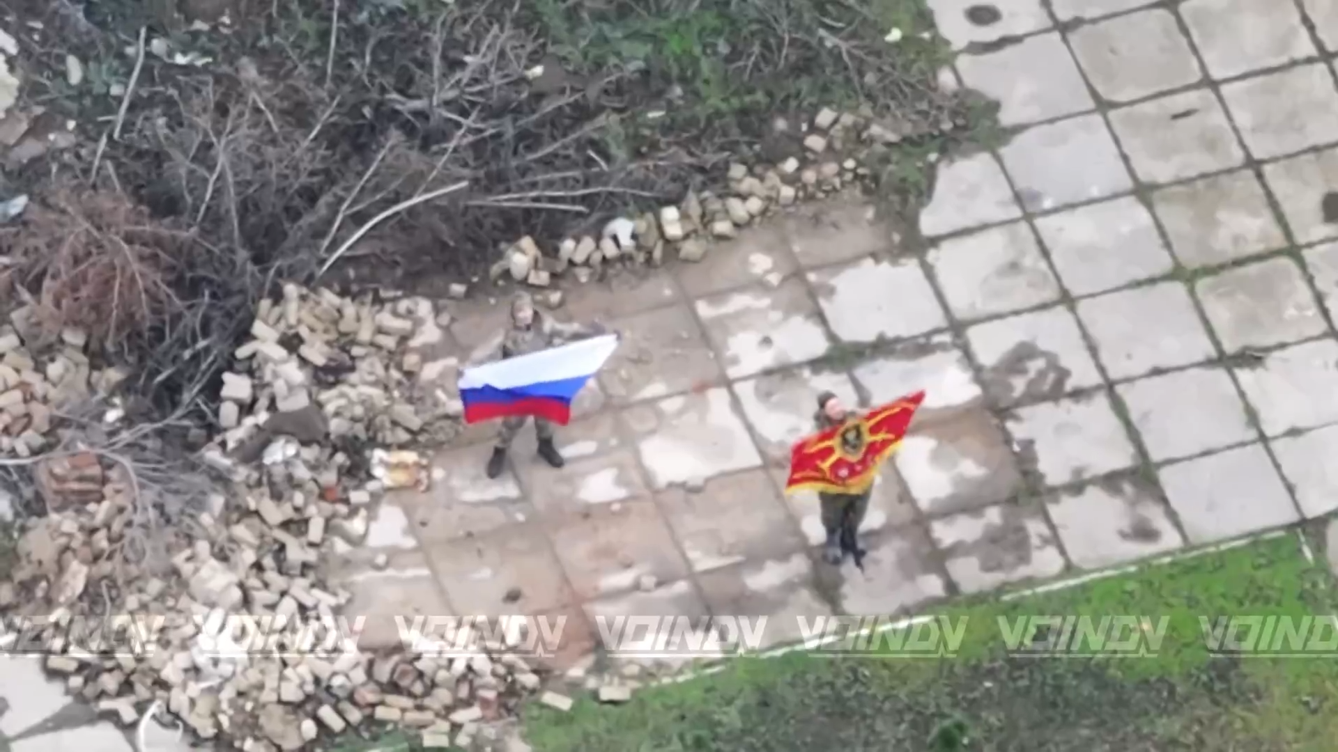 Монумент был укрыт мешками с песком, чтобы его не повредили взрывы и осколки. Но, как пишут наши военкоры, «русский солдат батьку Махно не обидит»! Военнослужащий «Востока» только срывает нацистский флаг и укрывает памятник знаменем сил России. На этих же кадрах можно увидеть панораму города, который вот-вот перейдёт под контроль России.