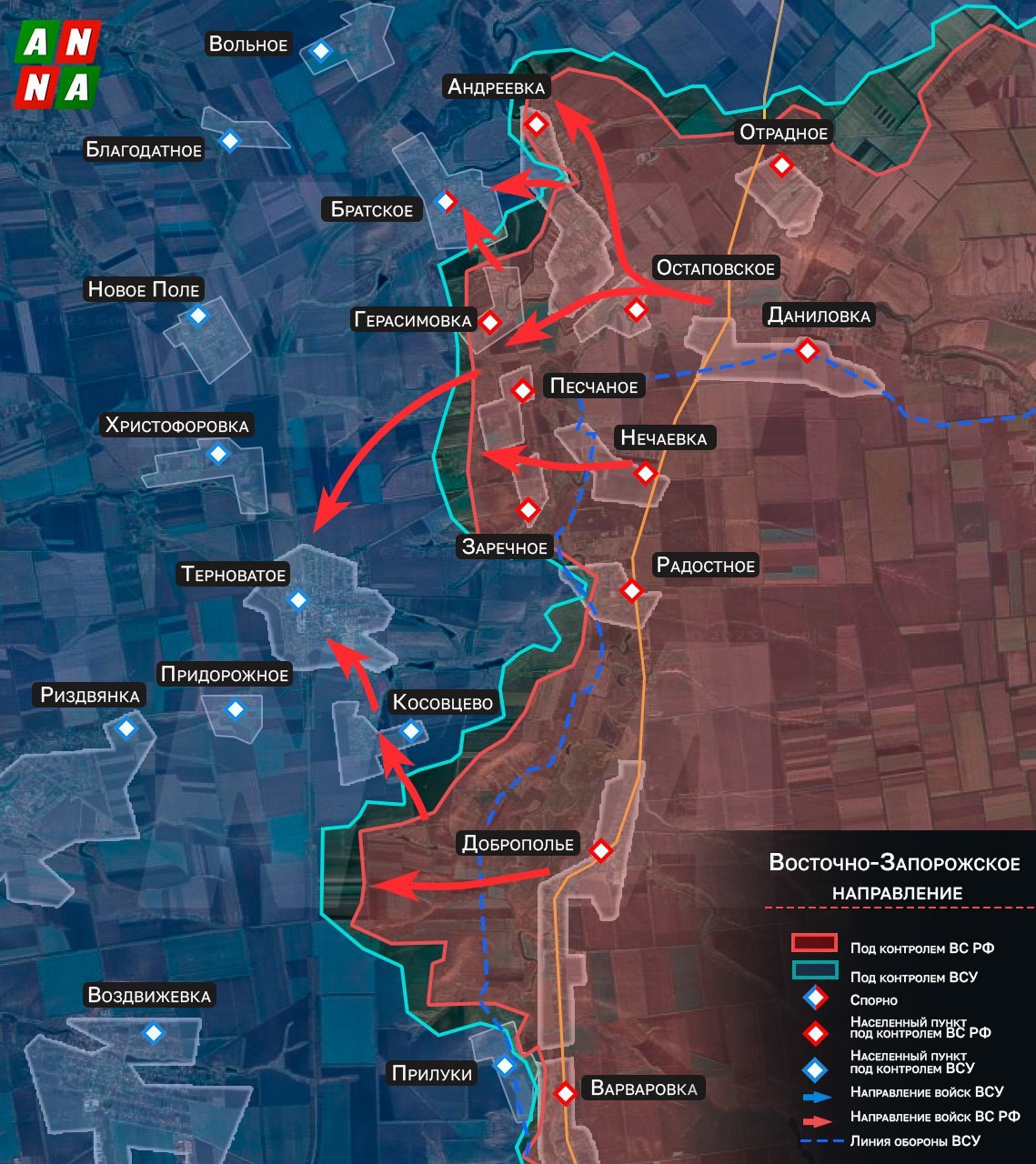Следующими целями на этом направлении могут стать населённые пункты Терноватое, Воздвижевское и Рождественское. Их освобождение даст прочную основу для дальнейшего продвижения вглубь области. Российские войска создали уже два крупных плацдарма на левом берегу Гайчура, что позволяет развивать наступление.
