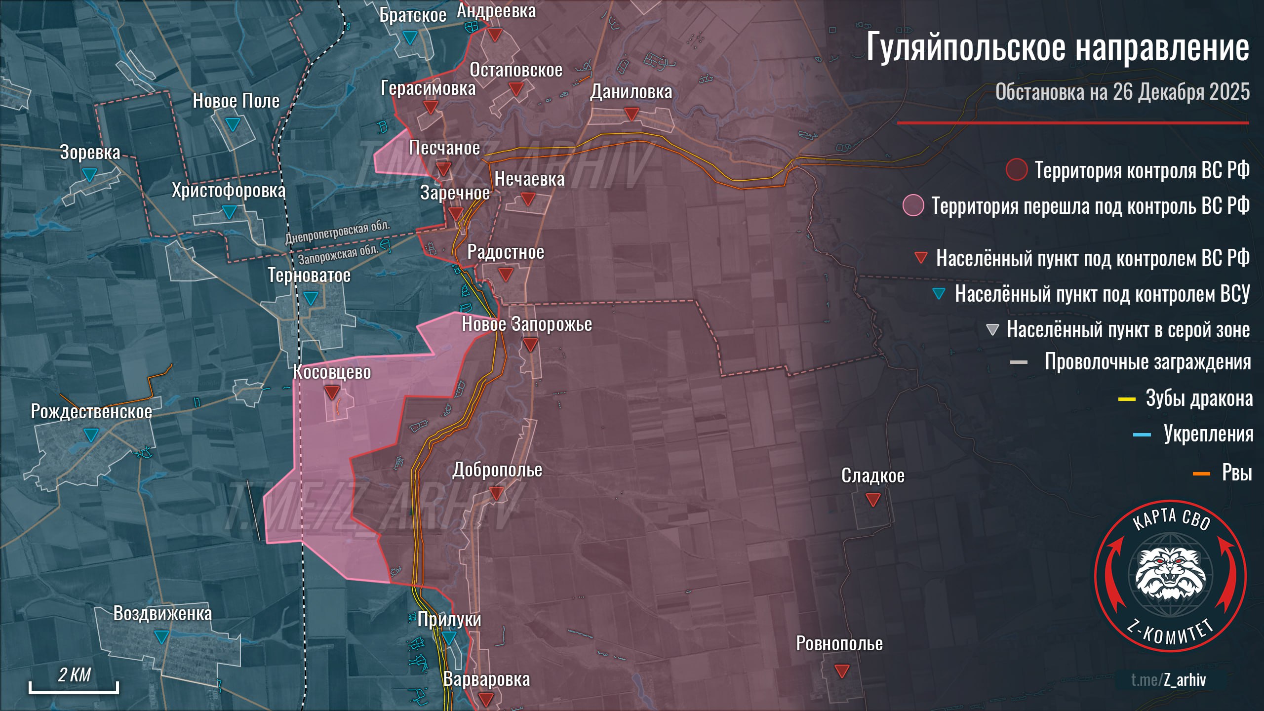 Подразделения группировки войск «Восток» ВС РФ в результате решительных действий освободили населённый пункт Косовцево. Благодаря этому открылся путь на Терноватое, за которым лежит путь вглубь обороны противника на Запорожском направлении.