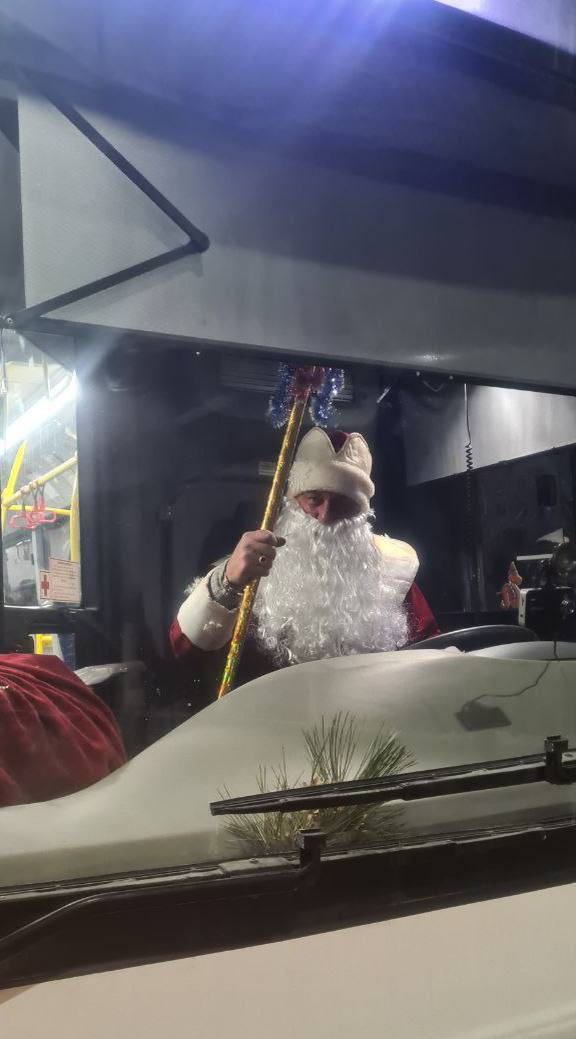 На маршрут №10 в Мариуполе сегодня не вышел штатный водитель. Так что заменить его пришлось Дедом Морозом. Зимний волшебник сел за руль маршрутки после целой ночи развоза подарков для детей.