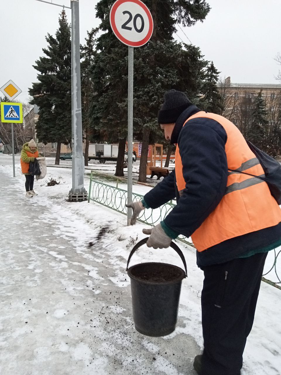 В Снежном коммунальщики занимаются благоустройством: убирают территории, вывозят мусор и посыпают тротуары.