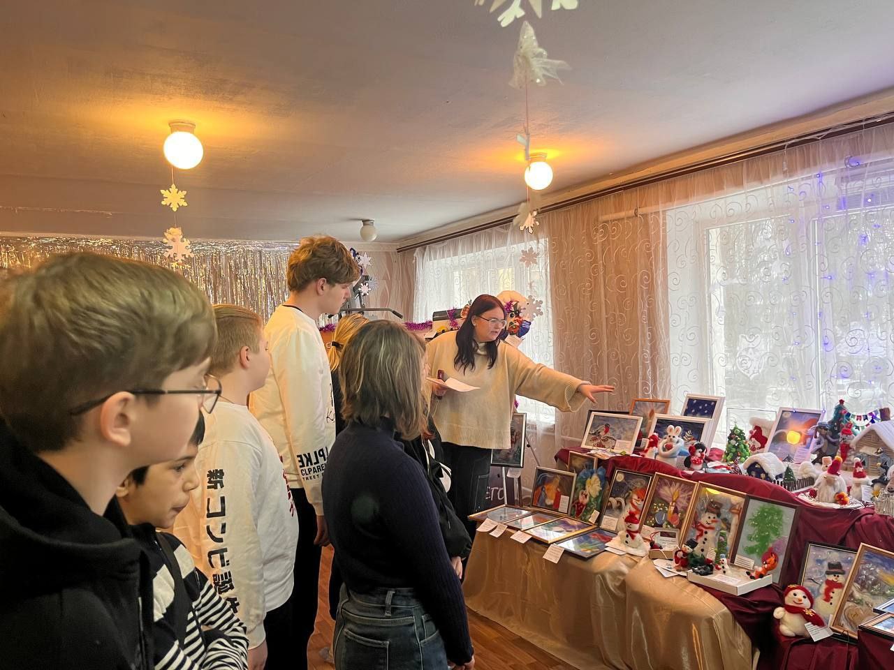 Мангушский округ (с. Камышеватское): В сельском Доме культуры открылась праздничная выставка картин в технике алмазной мозаики, посвященная Новому году и Рождеству. Работы представили участницы местного клуба «Золотые ручки».