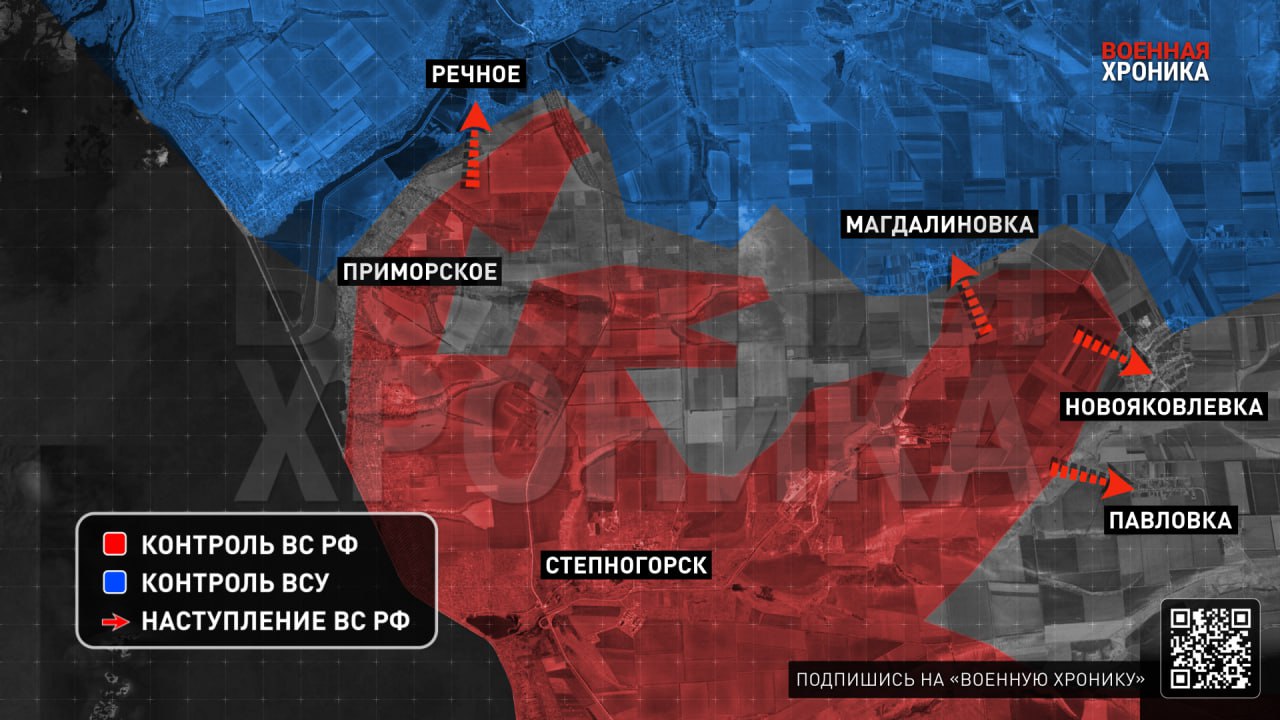 На Запорожском направлении российские войска развивают успех от освобождённого Лукьяновского и ведут наступление сразу на три населённых пункта. Штурмовые подразделения уже выбили противника из Новобойковского и вышли к окраинам двух других сёл, создавая угрозу ключевому логистическому узлу ВСУ в Камышевахе и потенциально изолируя вражеский гарнизон в Орехове.