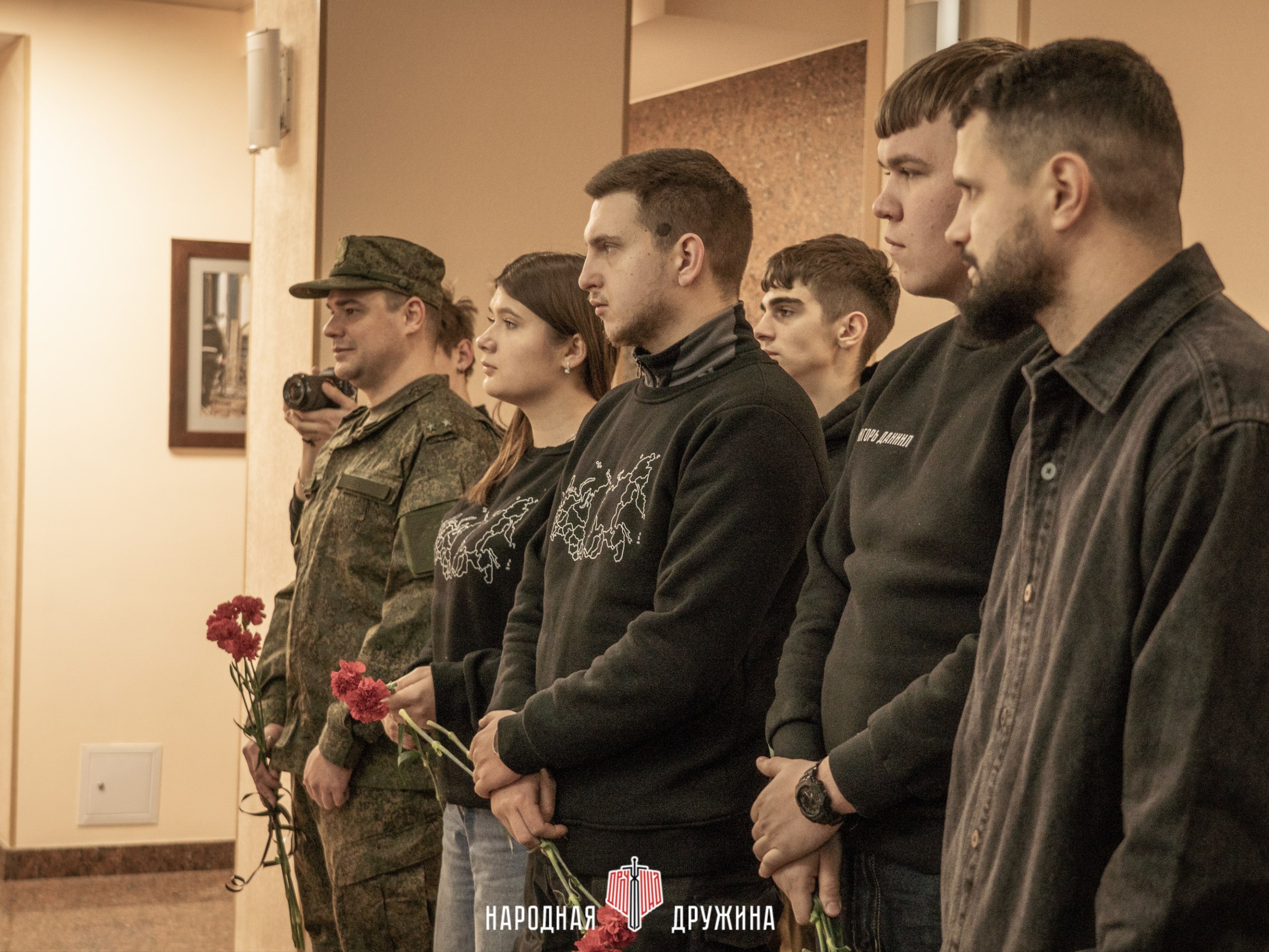 В Донецке активисты Народной Дружины возложили цветы к мемориальной доске в честь сотрудников Следственного комитета РФ, погибших при исполнении долга на территории ДНР и Херсонской области.