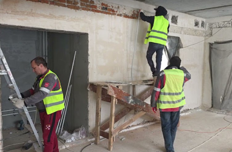 В селе Бердянское (Мангушский округ) продолжается восстановление детского сада «Дюймовочка» силами нижегородской подрядной организации. Ведутся внутренние работы: прокладка электропроводки, возведение перегородок.