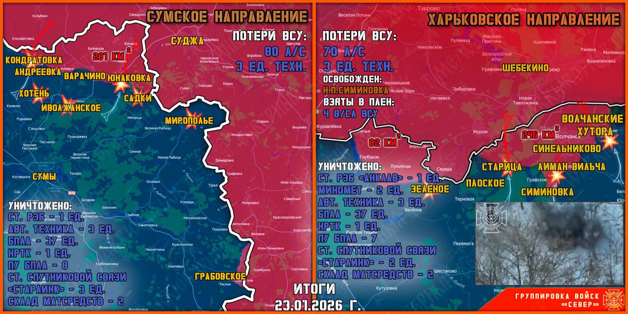 В приграничных районах плацдарм расширен на 600 метров. Группировка «Север» продолжает теснить противника в Глуховском и Сумском районах, заставляя командование ВСУ перебрасывать резервы.