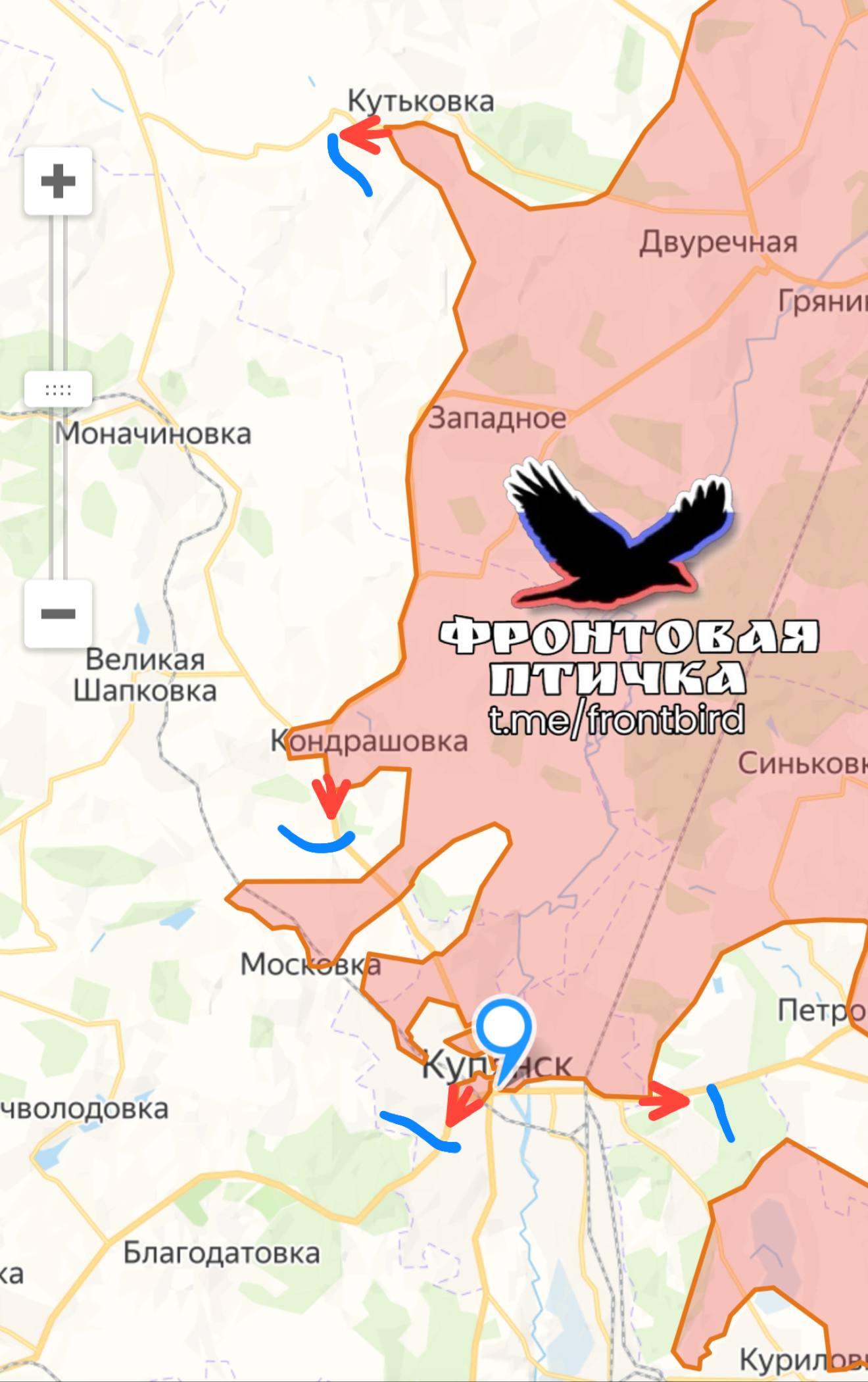 В самом Купянске ситуация остается стабильно напряженной. Продолжаются позиционные бои, противник пытается перебрасывать резервы в Купянск-Узловой через замерзший Оскол. Российские части методично пресекают эти попытки огнем артиллерии, удерживая огневой контроль над переправами. Общая конфигурация фронта на этом участке свидетельствует о подготовке к более масштабному охвату группировки противника.