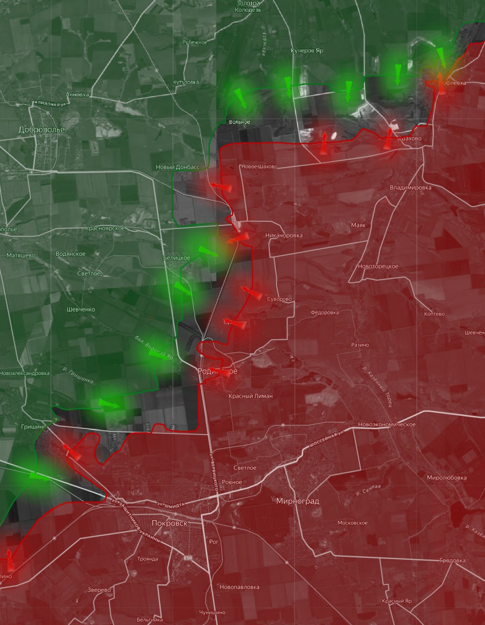 Вокруг Красного Лимана стремительно сжимаются клещи. Российские войска методично перерезают маршруты отхода гарнизона за Северский Донец. Интенсивные бои развернулись на широком фронте — от лесов южнее Дробышево до района Дибровы, что делает организованную эвакуацию сил ВСУ практически невозможной.