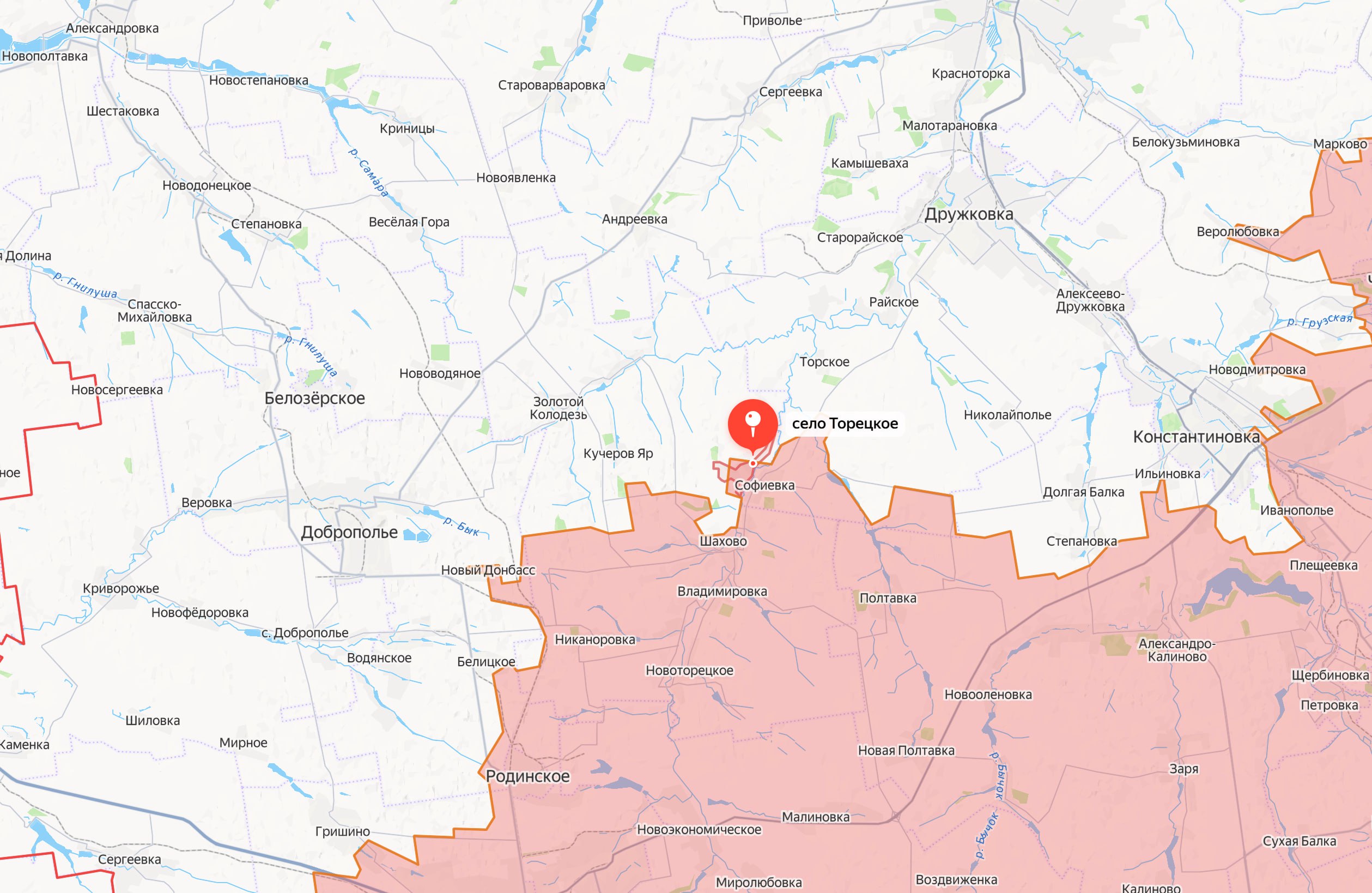 Как сообщает военный обозреватель Александр Коц, село Торецкое расположено на важной трассе, соединяющей Доброполье с Дружковкой. Его освобождение позволяет российским войскам продолжать расширять зону контроля к западу от главного укрепрайона ВСУ в Донбассе.