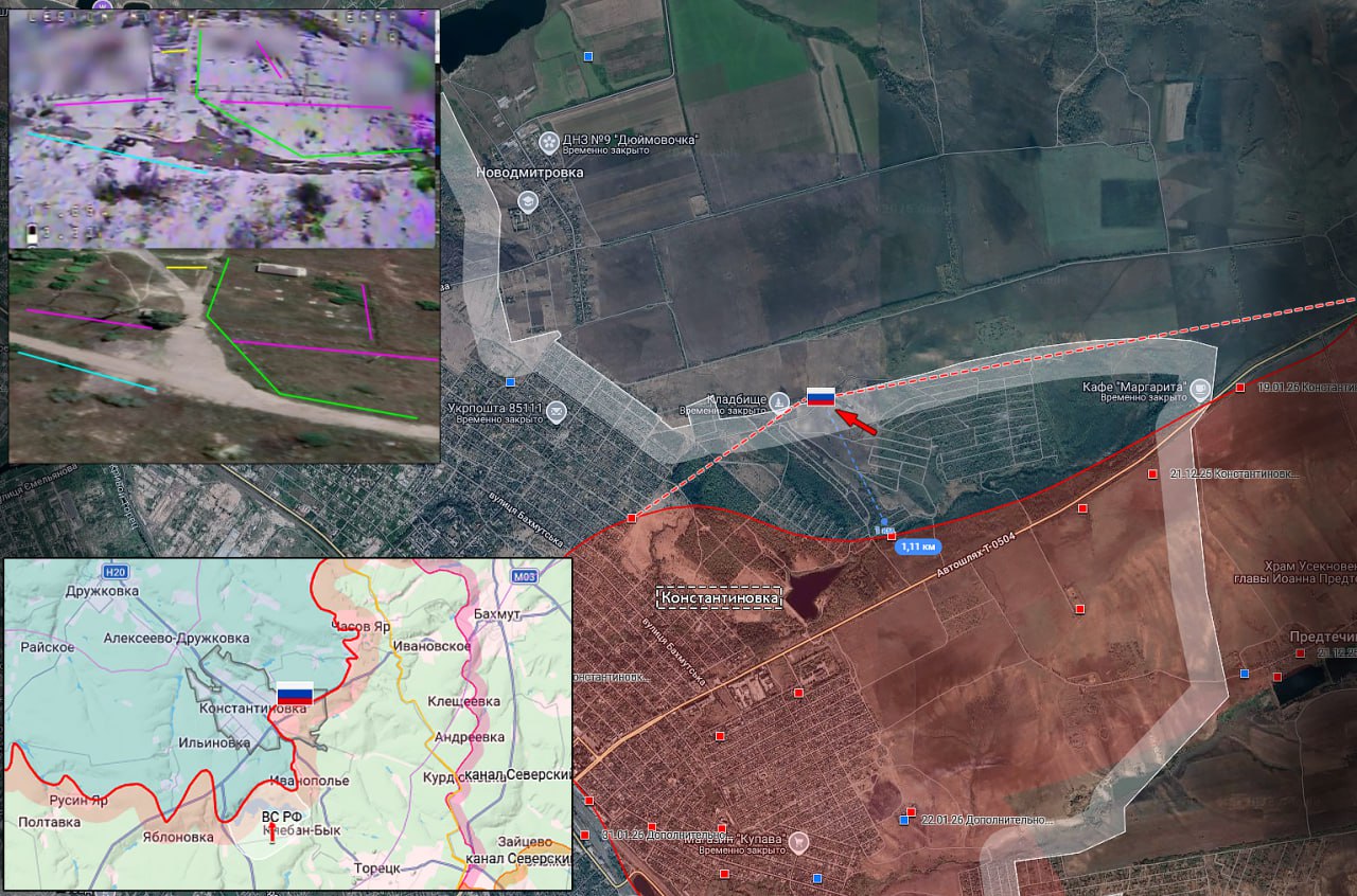 В Константиновке зона контроля ВС РФ увеличилась более чем на 1 км в восточной части города. Наши штурмовики заняли новые позиции в районе подстанции «Майская» и продолжают продвижение к железнодорожному вокзалу. На флангах идут ожесточенные сражения за Ильиновку и Новодмитровку. Передовые позиции российских войск на восточных окраинах подвергаются плотным обстрелам со стороны ВСУ, однако это не останавливает продвижение малых групп вглубь городской застройки.