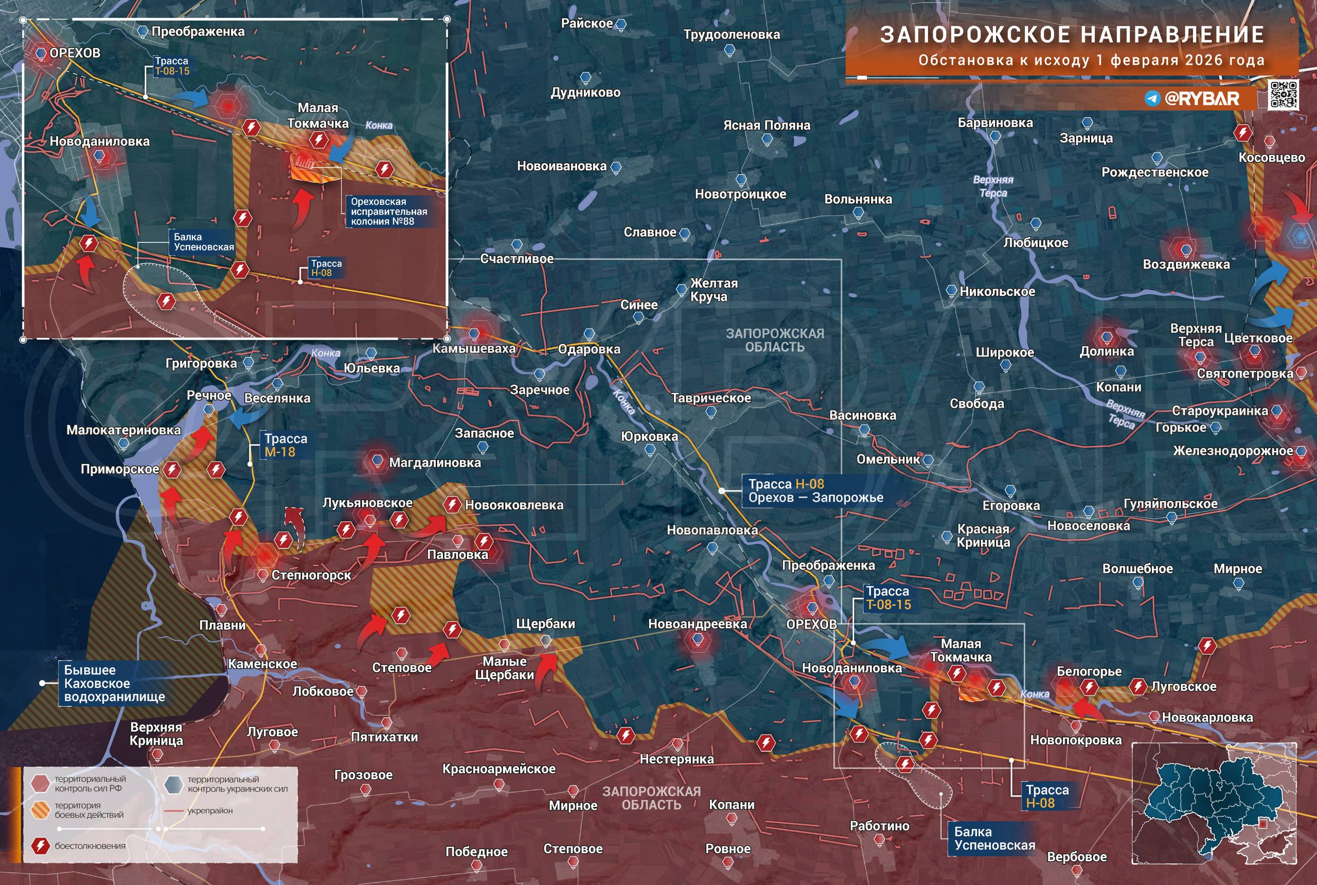 Продвижение на Запорожском фронте замедлилось, боевые действия перешли в фазу позиционного противостояния с активным использованием артиллерии и ВКС. Малая Токмачка на данный момент полностью находится в «серой зоне»: свидетельства присутствия противника в южной части села не позволяют говорить об уверенном контроле. Группировка «Восток» продолжает истощать резервы ВСУ в районе Терноватого, готовясь к отражению возможной масштабной контратаки противника.