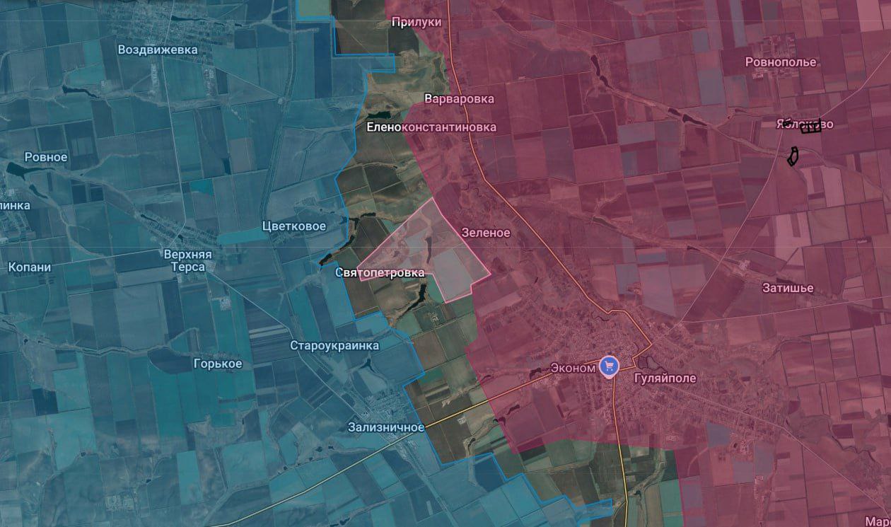На Гуляйпольском участке штурмовые группы 114-го полка освободили село Петровка (Святопетровка), расположенное к северу от Гуляйполя. Армия России продолжает планомерно уничтожать линию обороны ВСУ по водоразделу рек Гайчур и Верхняя Терса, стремясь встать вдоль железной дороги. Несмотря на то, что проломить оборону непосредственно в Зализничном пока не удается, взятие Святопетровки значительно улучшает тактическое положение наших войск и создает угрозу флангового обхода.