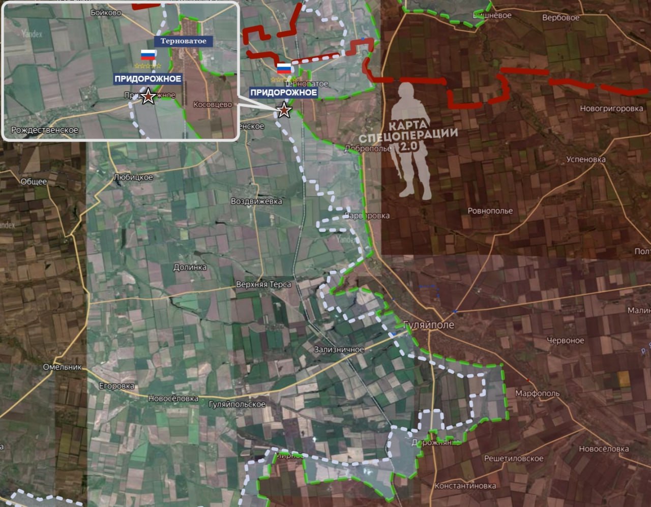 На Гуляйпольском направлении подразделения группировки «Восток» освободили село Придорожное, расположенное к востоку от Рождественского. Это продвижение позволило сделать многое. В частности выйти на подступы к Староукраинке и Цветковому, вплотную приблизившись к реке Верхняя Терса.