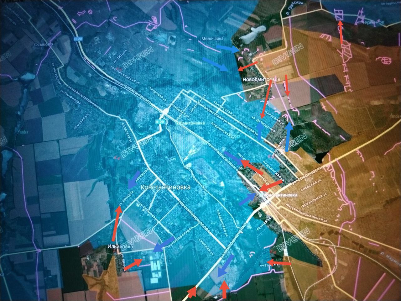 Со стороны Новодмитровки идет продавливание противника в частном секторе и лесной зоне, штурмовики выходят на северо-восточные окраины. В поселке Бересток (Константиновка) продолжается контратака ВСУ. В юго-восточной части Степановки идут встречные бои за господствующие высоты в лесопосадках.