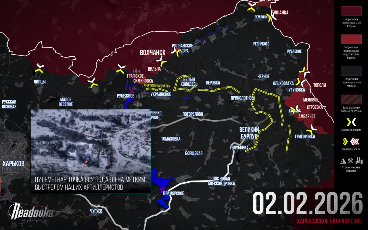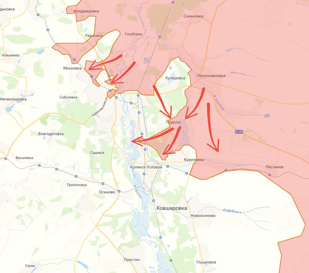 На Купянском направлении продолжаются вязкие и тяжелые встречные бои за каждый участок. Российские подразделения провели серию контратак, что позволило деблокировать и наладить снабжение частей, удерживающих микрорайон Юбилейный. Со стороны промзоны наши бойцы прорвались через леса к востоку от города и заняли большую часть села Подолы, после чего вышли к окраинам Купянска-Узлового. В районе Петропавловки также зафиксирован прорыв, в результате которого группировки соединились, оставив часть сил ВСУ в Кучеровке в номинальном окружении.