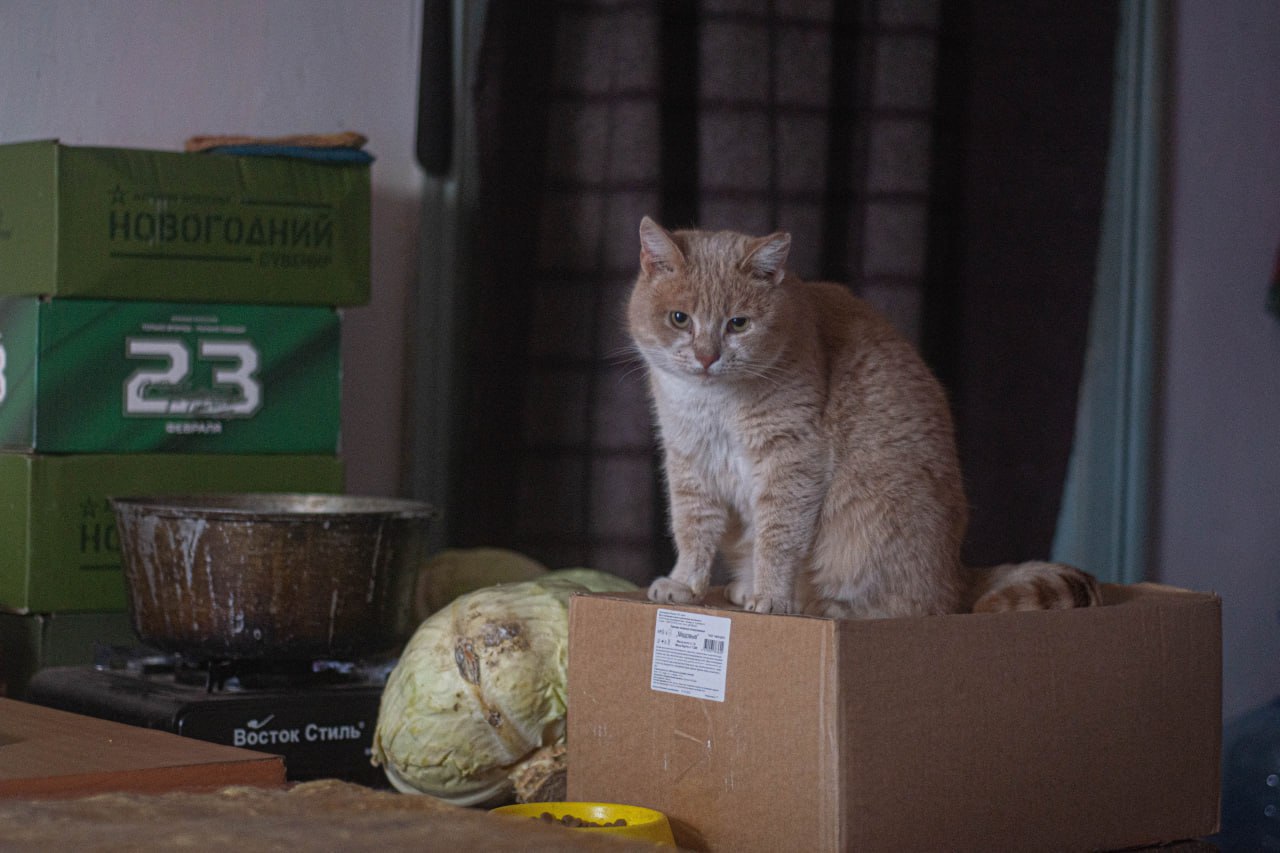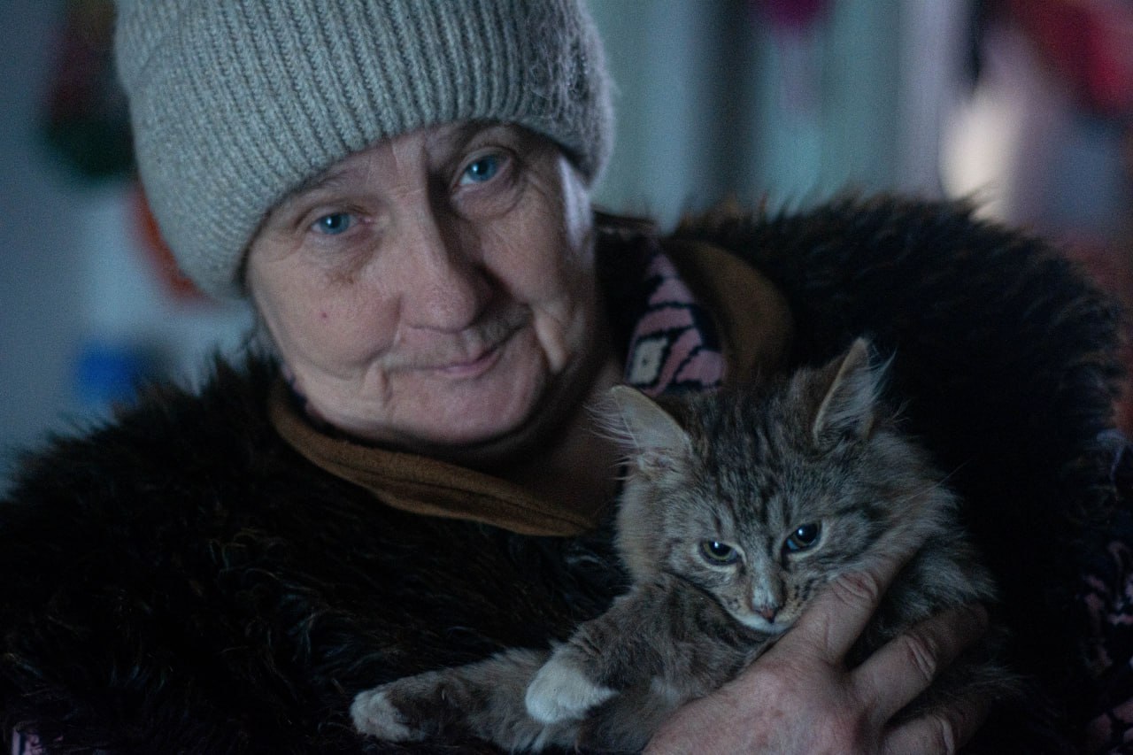 Кошачий приют в разбитом доме. Тамара Шатрова осталась в городе ради 16 своих питомцев. В дом без окон и света приехал мобильный ветпункт волонтеров. Они подлечили животных и привезли корма, чтобы помочь женщине пережить зиму.