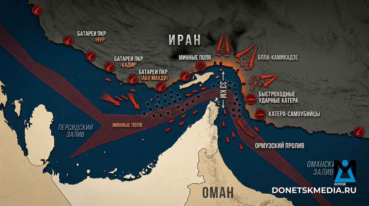 Ормузский пролив стал своего рода ловушкой: ширина в самом узком месте всего 33 километра. Иран десятилетиями готовился к его блокировке: береговые ракеты с подлётным временем в минуты, тысячи мин, дроны и катера-камикадзе. Авианосная группа в такой акватории – не хозяин, а крупная мишень, отметил политический аналитик, научный сотрудник Института стран СНГ Руслан Панкратов: