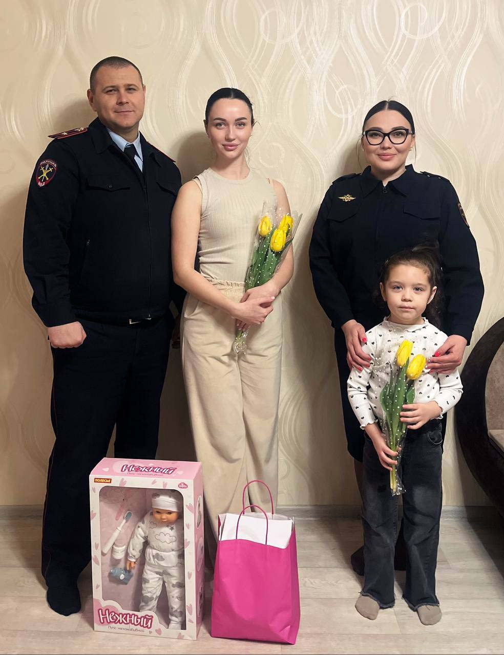 Полицейские навестили семью погибшего при исполнении долга коллеги Ивана Хаджинова. Руководство отдела поздравило жену и дочь героя с весенними праздниками, напомнив, что ведомство всегда готово оказать им любую поддержку.