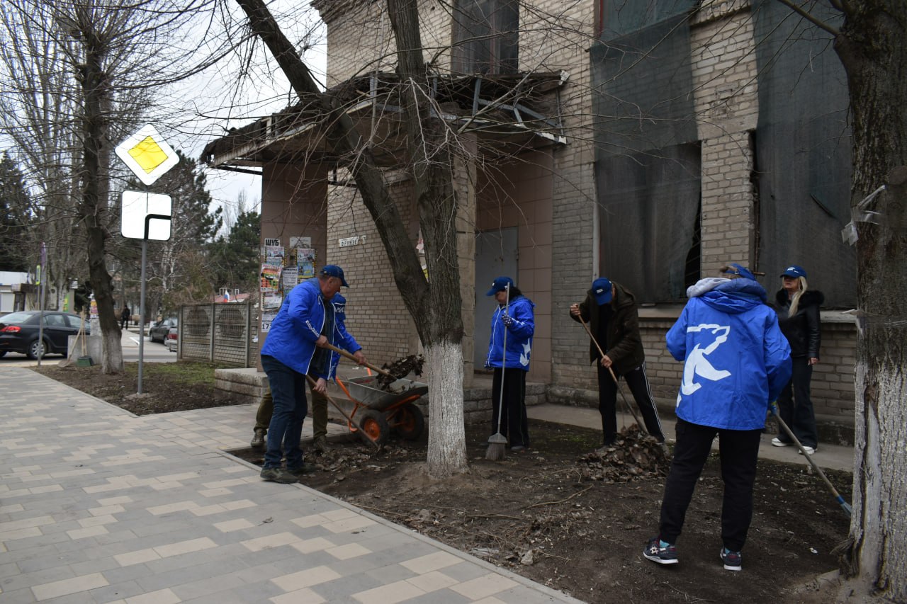 В Амвросиевке прошел масштабный субботник в рамках партпроектов «Чистая страна» и «Городская среда». Активисты, представители администрации, предприниматели и жители убирали улицы и газоны, готовя город к весне.