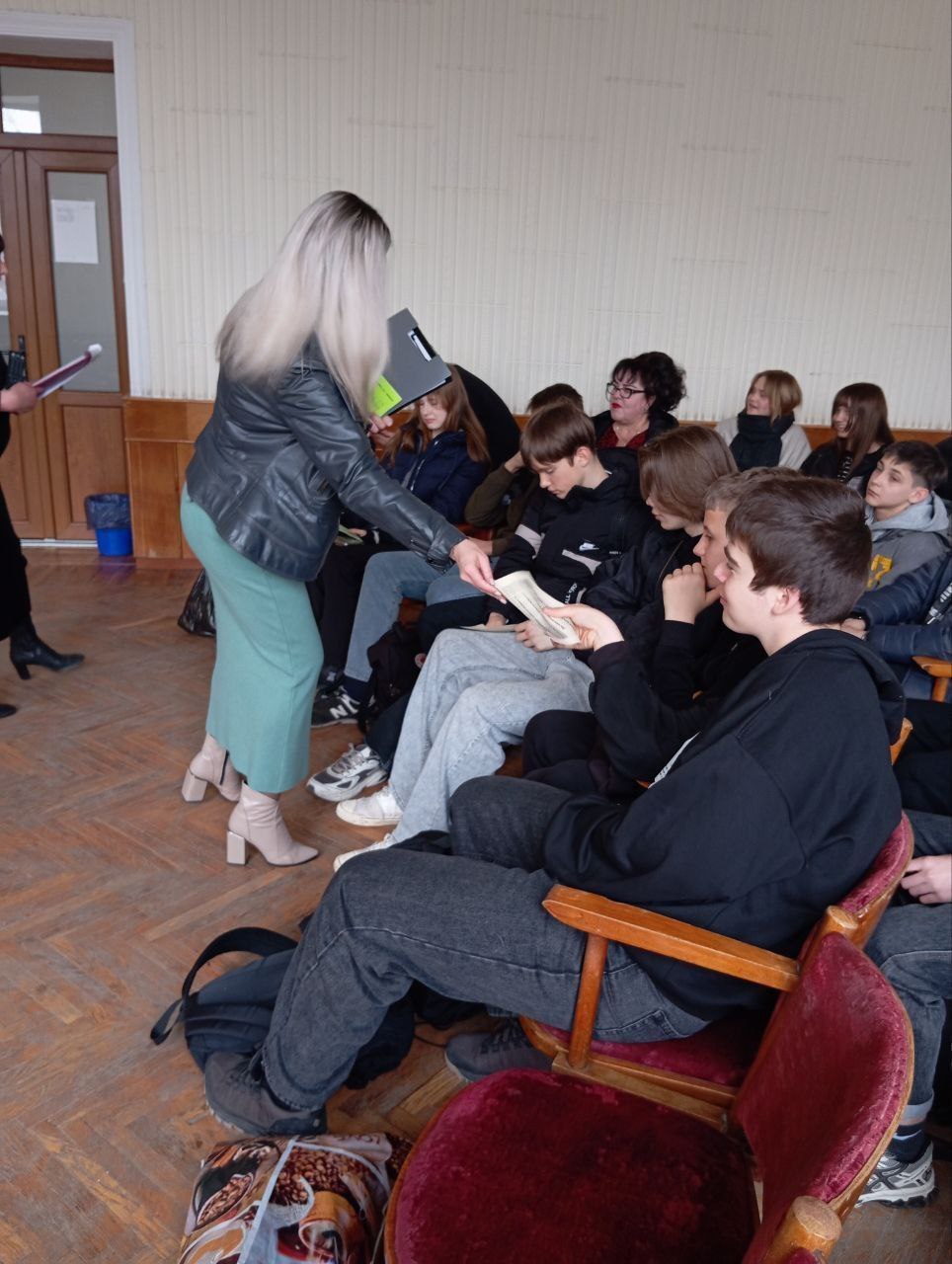 В школе №101 Донецка для восьмиклассников провели информационный час «Мы в ответе за свои поступки». Специалисты социальной поддержки и работники Дворца культуры обсудили с подростками правовые нормы, ответственность и последствия противоправного поведения.
