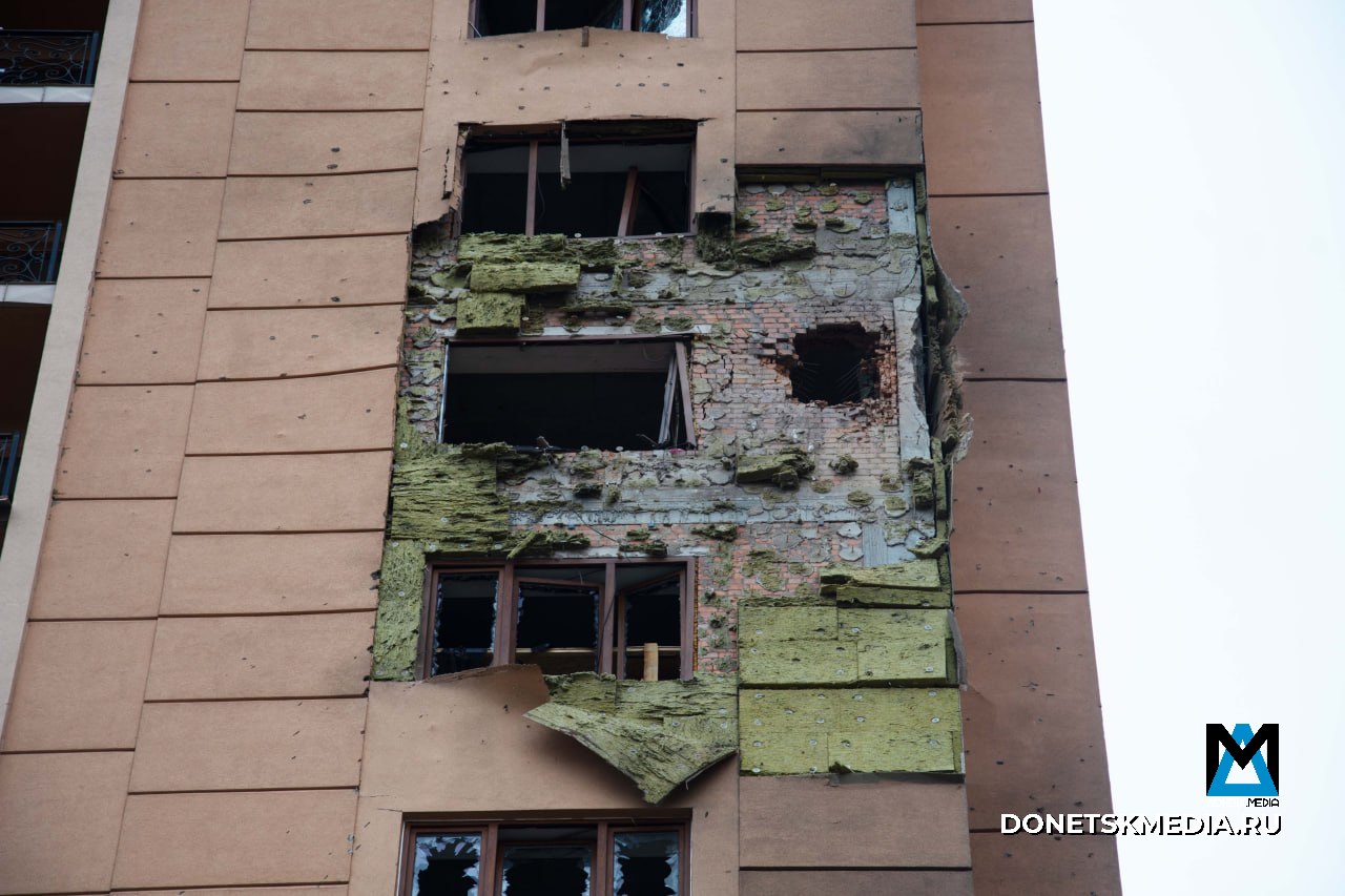 Сегодня Донецк вновь подвергся атаке. Противник применил один дрон. В центре города повреждены многоэтажное жилое здание: в квартирах мирных жителей выбиты окна, на прилегающей территории разбросаны обломки беспилотника, осколки стекла и бетон. По предварительным данным, пострадавших нет.