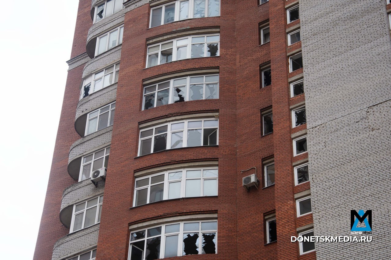 Как сообщил мэр Донецка, в результате атаки БПЛА повреждено остекление 17 окон, а также получили повреждения 2 двери и лоджии в многоквартирных домах.