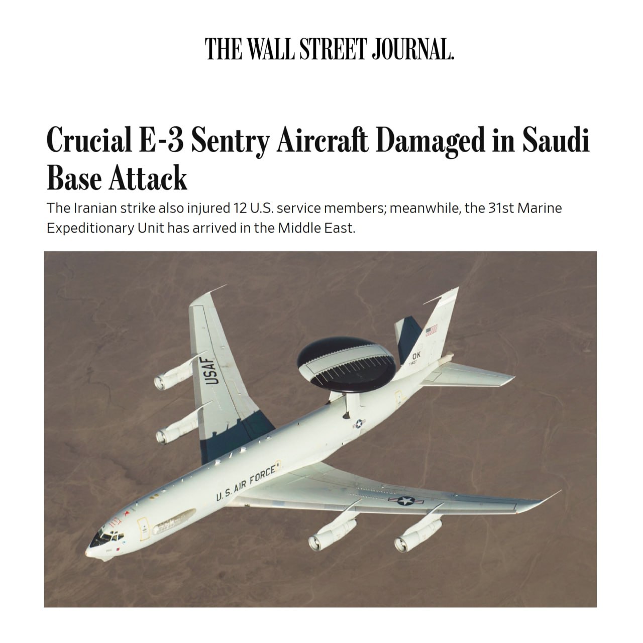 Иран нанес ракетный удар по базе Принц Султан в Саудовской Аравии, в результате чего был поврежден стратегический самолет США E-3 Sentry и получили ранения двенадцать американских военных.