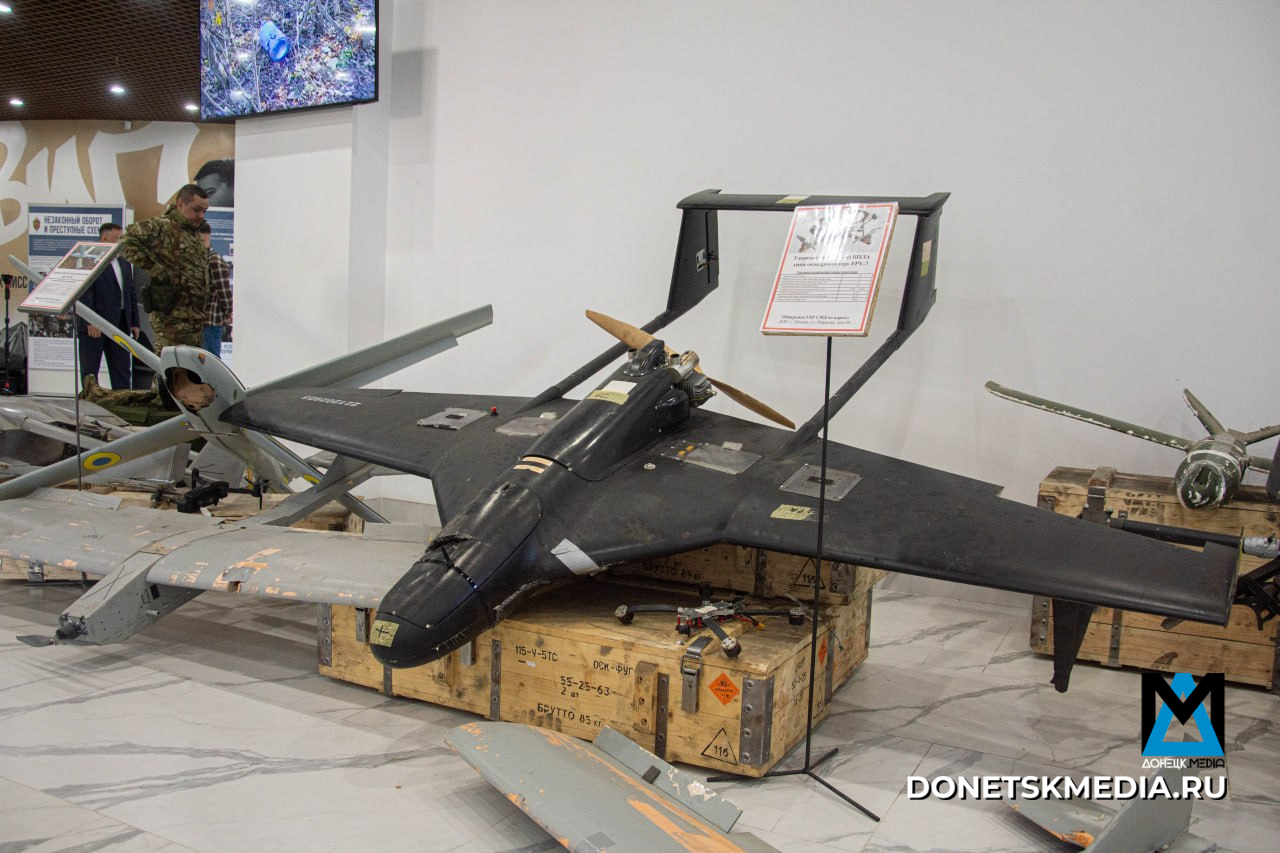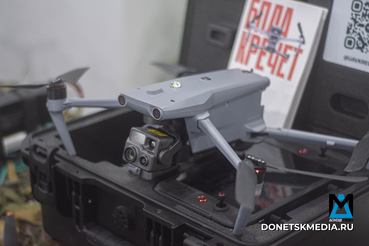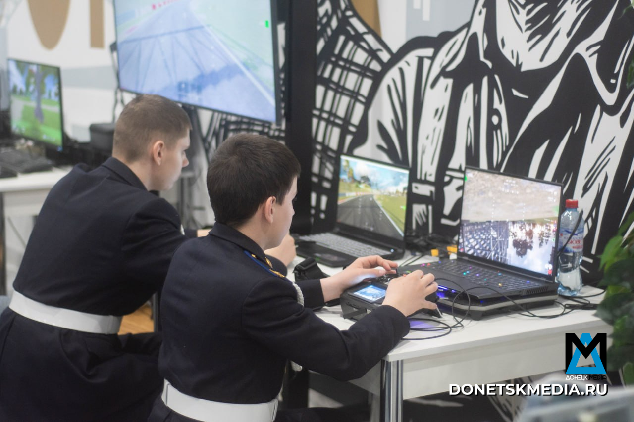 А дальше начиналось самое живое. Вот выстроились вдоль стены обломки вражеских дронов — тех, что сбила система «Купол Донбасса». Беспилотники, которые ещё недавно несли смерть, теперь лежат беспомощным металлоломом, и единственная их польза — дать сфотографироваться. Рядом — совсем другие аппараты: те, что уже на вооружении у сотрудников ФСБ. К ним можно подойти, потрогать, расспросить бойцов. И не просто посмотреть, а самому попробовать сесть за пульт: на мероприятии работали тренажёры с мониторами, где любой желающий проходил быстрый инструктаж и учился управлять дроном — хотя бы минуту почувствовать себя оператором БПЛА.