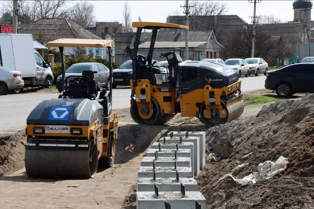 Новоазовск. На федеральной трассе Р‑280 «Новороссия» продолжаются реконструкция участка в Новоазовске, строительство обхода Мариуполя (32 км) и расширение трассы до четырёх полос до границы Запорожской области.
