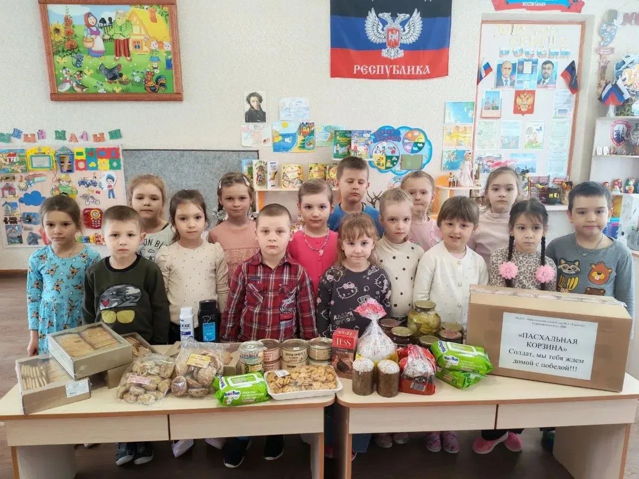 Жители и воспитанники детских садов объединились в акции «Пасхальная корзина». Бойцам на передовую отправили домашнюю выпечку, поделки и сладости, чтобы передать частичку тепла к Светлому празднику.