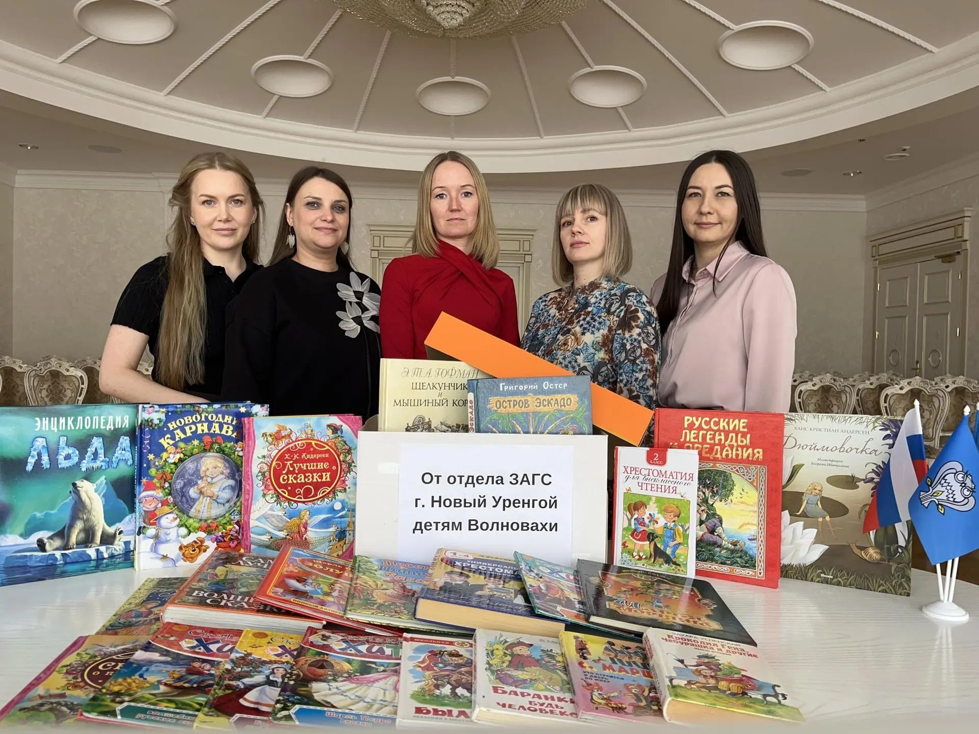 Ямальские сотрудники ЗАГСа собрали для местных жителей гуманитарный груз и передали в библиотеки города 25 новых книг — от детских энциклопедий до классических сказок.