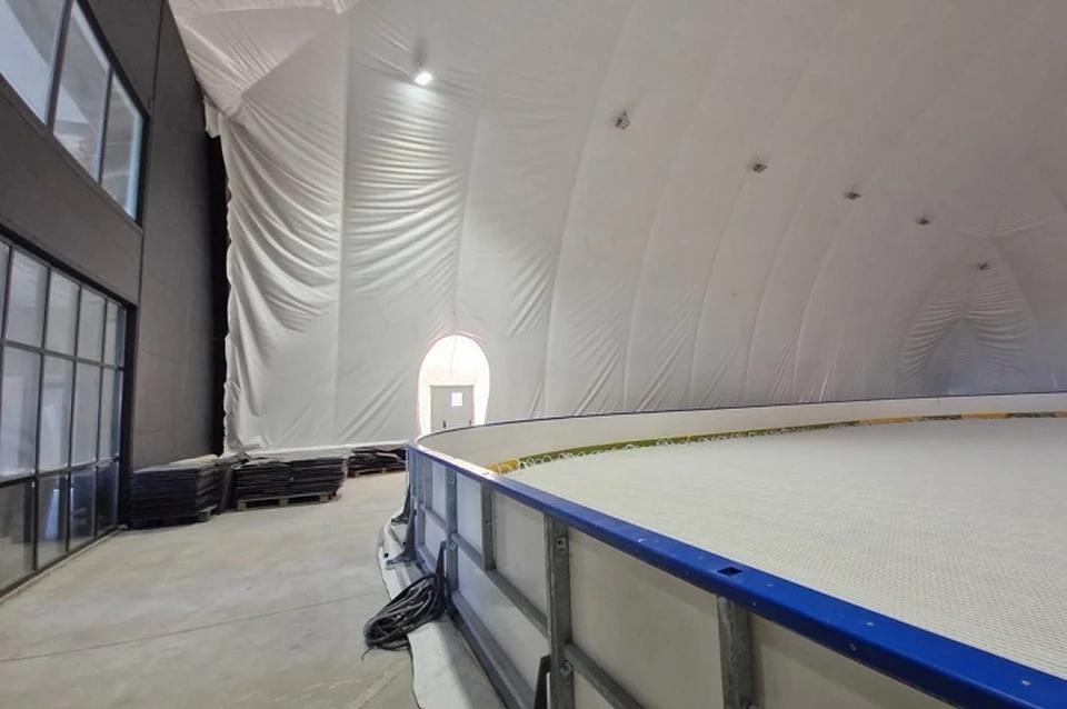 В Орджоникидзевском районе вовсю идет восстановление ледового катка. Над ареной (56х28 метров) уже смонтирован воздушный купол и установлено холодильное оборудование. Сейчас строители заняты внутренней отделкой раздевалок и кафе.