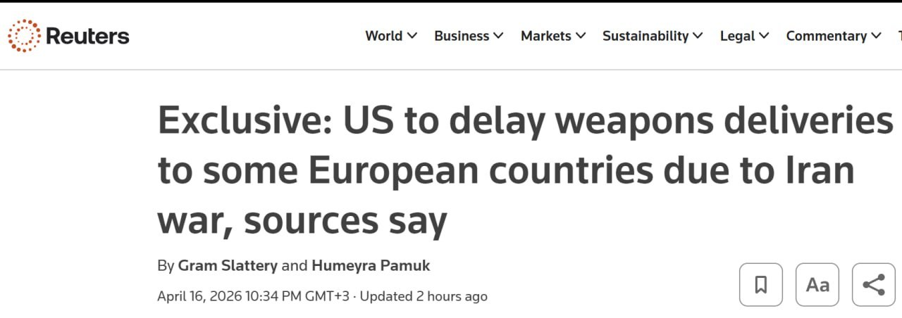 Американские чиновники официально уведомили своих коллег в Европе, что выполнение обязательств по ранее заключенным контрактам на поставку вооружений временно откладывается. Такое решение продиктовано прямой необходимостью направить ресурсы на ведение войны с Ираном, которая стремительно истощает арсеналы Соединенных Штатов.