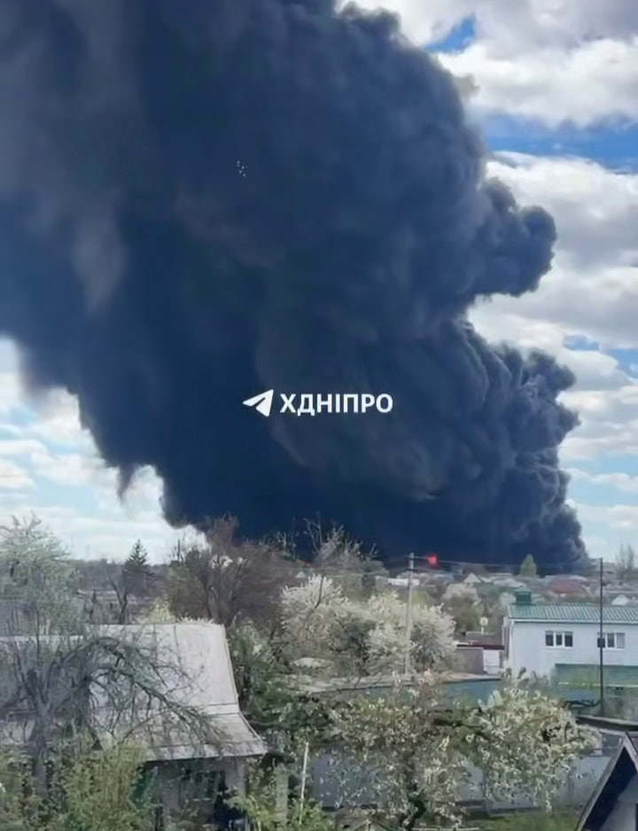 Сегодня днем российские силы поразили новый объект в Днепропетровске вдобавок к ночному массированному удару. Местные жители сообщают, что прилет пришелся по топливному резервуару.