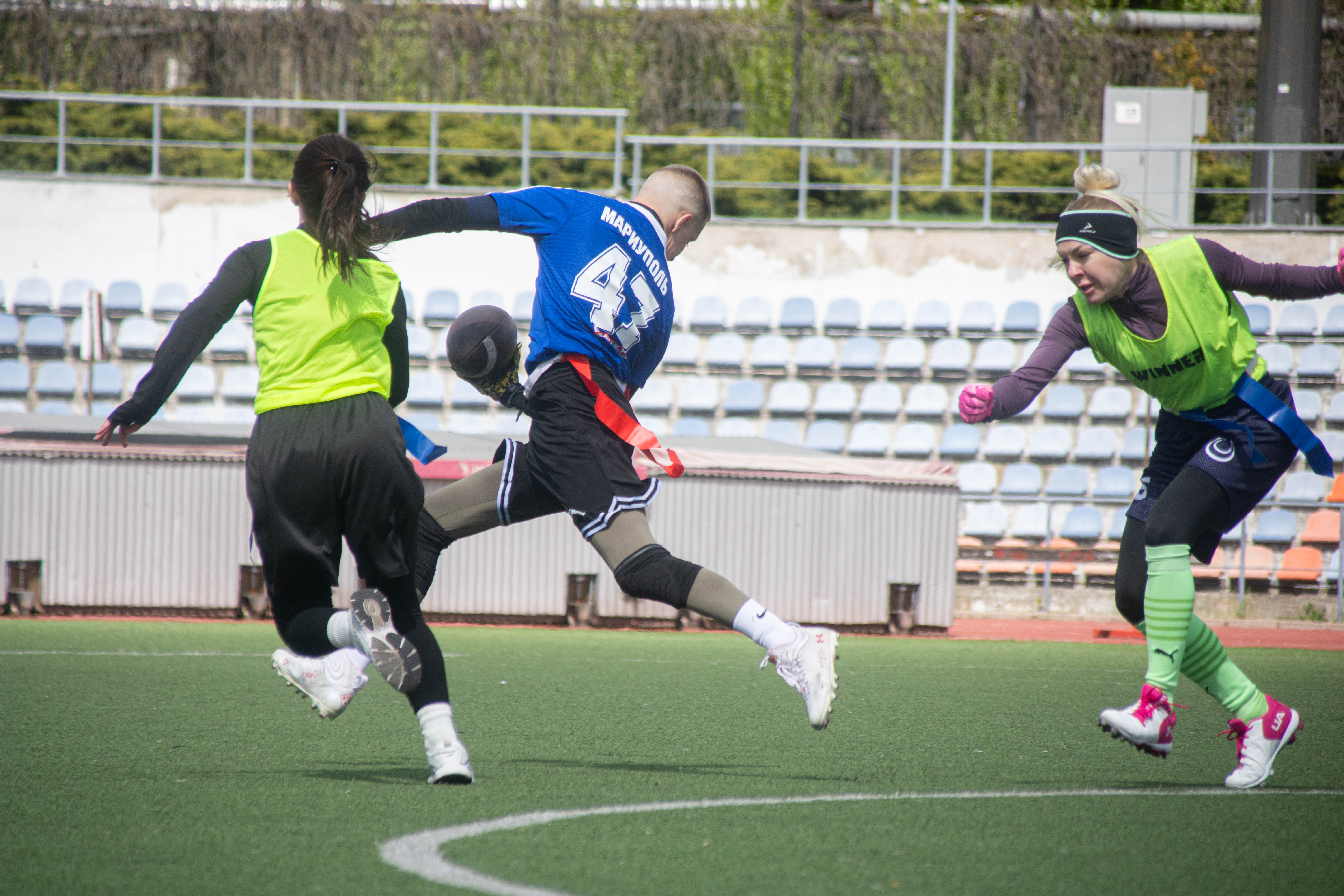«Я советую другим девушкам приходить на тренировки, – говорит Ольга Ткаченко. – Это комплексная нагрузка: и лёгкая атлетика, и сила. Все девочки, которые играют во флаг-футбол, очень хорошо выглядят – подчёркнутые мышцы, эстетично. И главное – здесь учишься работать в команде. Если каждый сам за себя, победы не добиться».