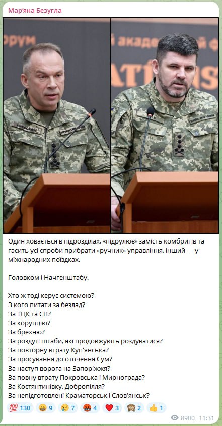 Не скрасили ситуацию и строки о том, что Сырский возьмёт на себя контроль снабжения ВСУ. Как отмечала и Безуглая, и военные эксперты, Сырский — лишь медиа-пешка в инфовойне, которая обеляет чёрные пятна правды об украинской армии.